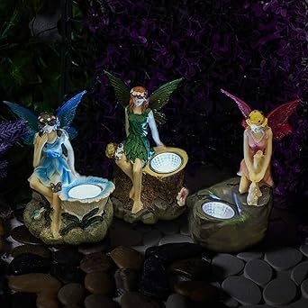 Skip to main content. 42 out of 5 stars 42. Garden mile pack of 3 fairy garden statues with solar spotlights outdoor novelty garden lighting led fairy lights solar lights outdoor fairy garden ornaments in pink blue and green.