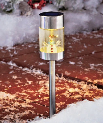 Solar Powered Snowman Garden Stake Landscape Color Change Lights