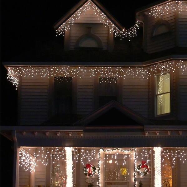 Amazon Com Snowing Icicle String Lights Outdoor Solar Battery