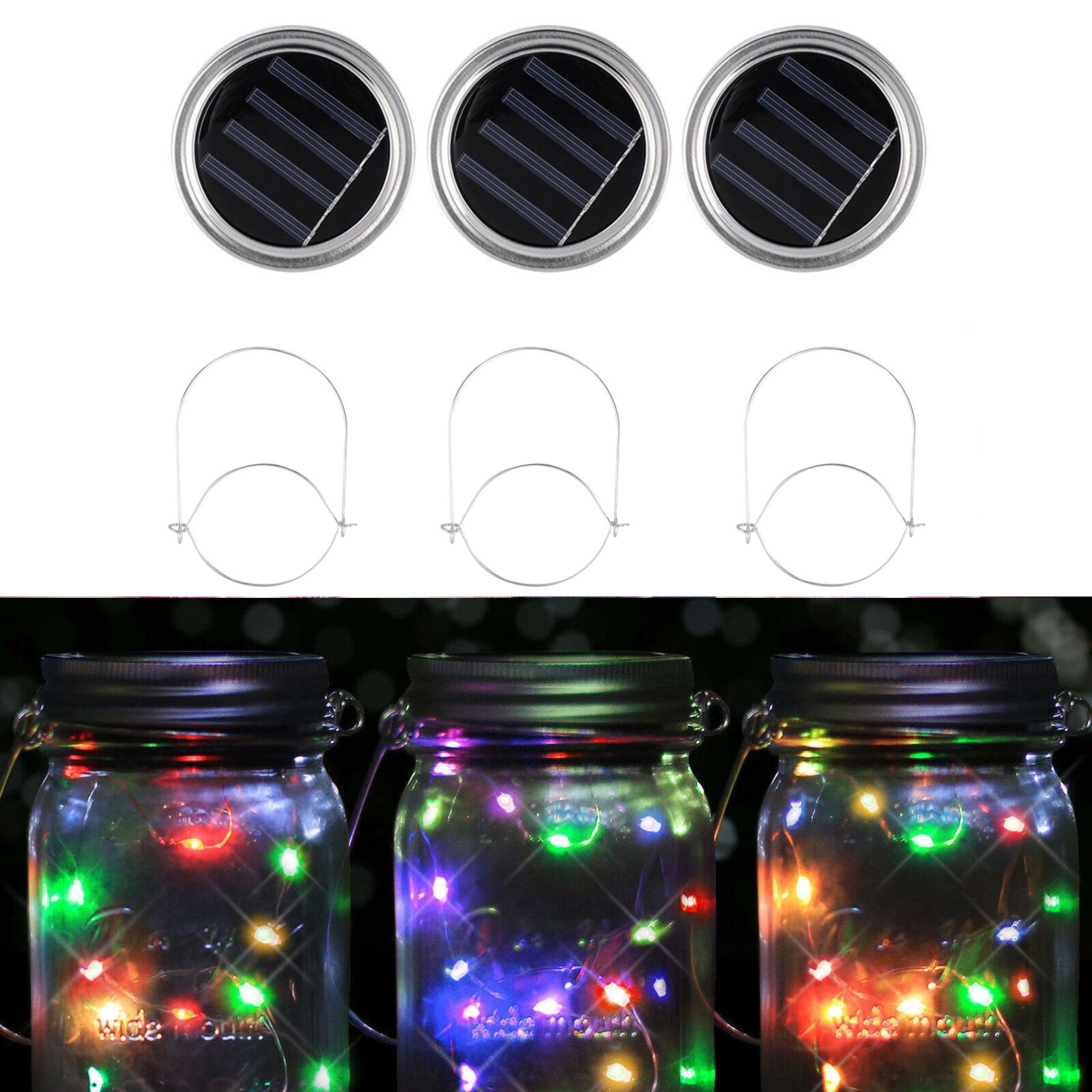 Overfly Solar Mason Jar Lid Lights Waterproof 3 Pack 10 Led