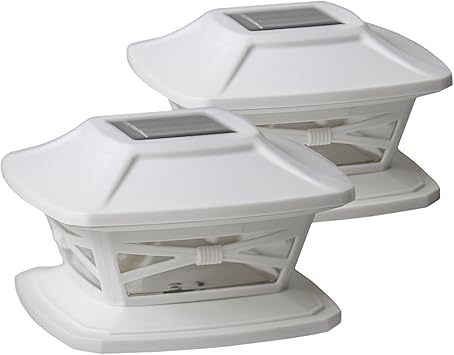 Set Of 2 Solar Post Light Cap 4x4 Fence Post Mount Entryway Bright