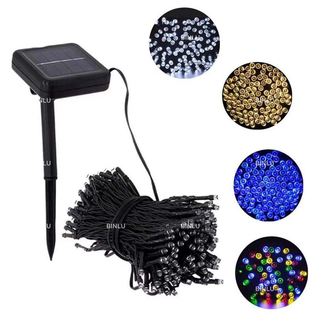 10m 100l Led Solar Powered Waterproof Black Line Wire Christmas