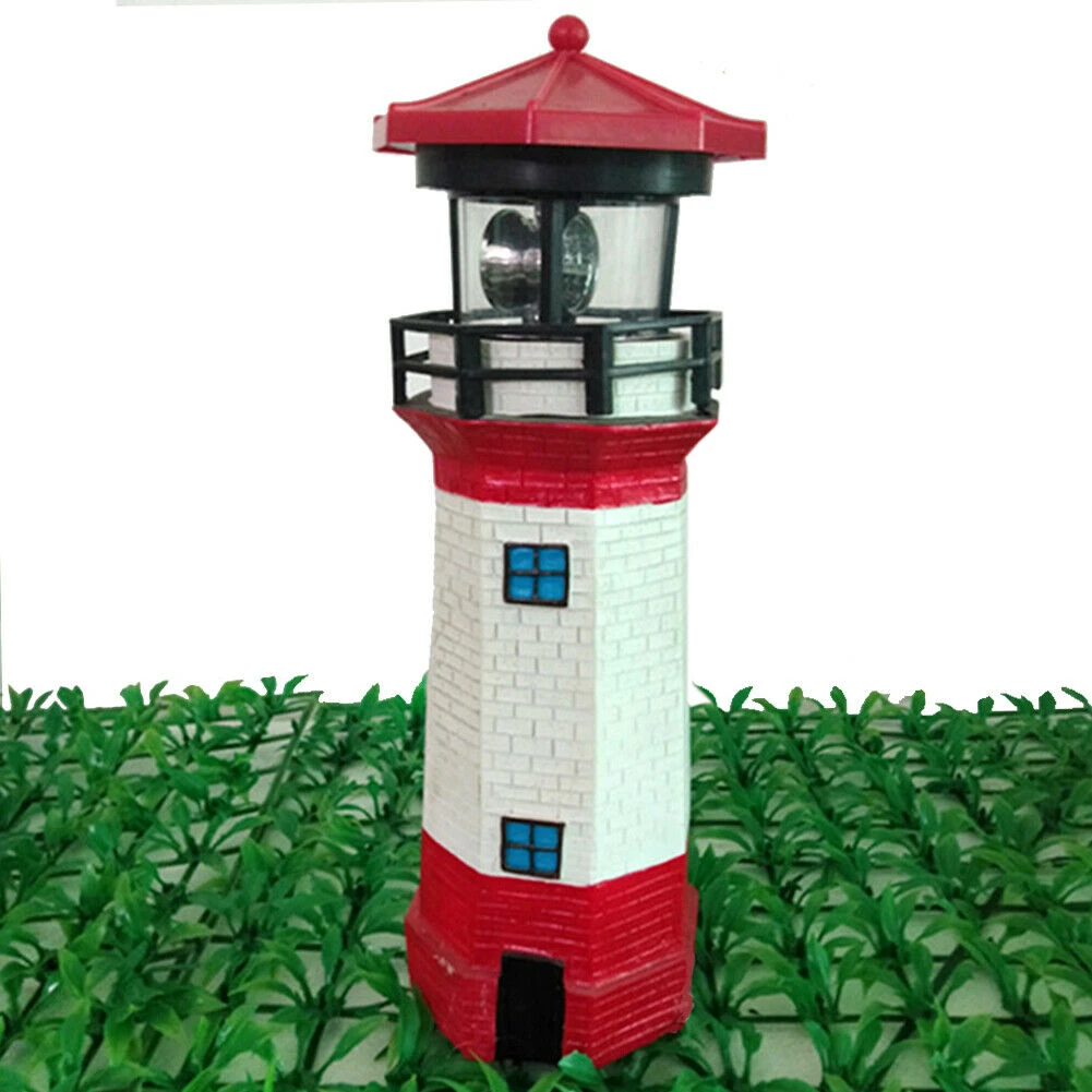Solar Lamp Outdoor Lighthouse With Rotating Light Beam Decoration