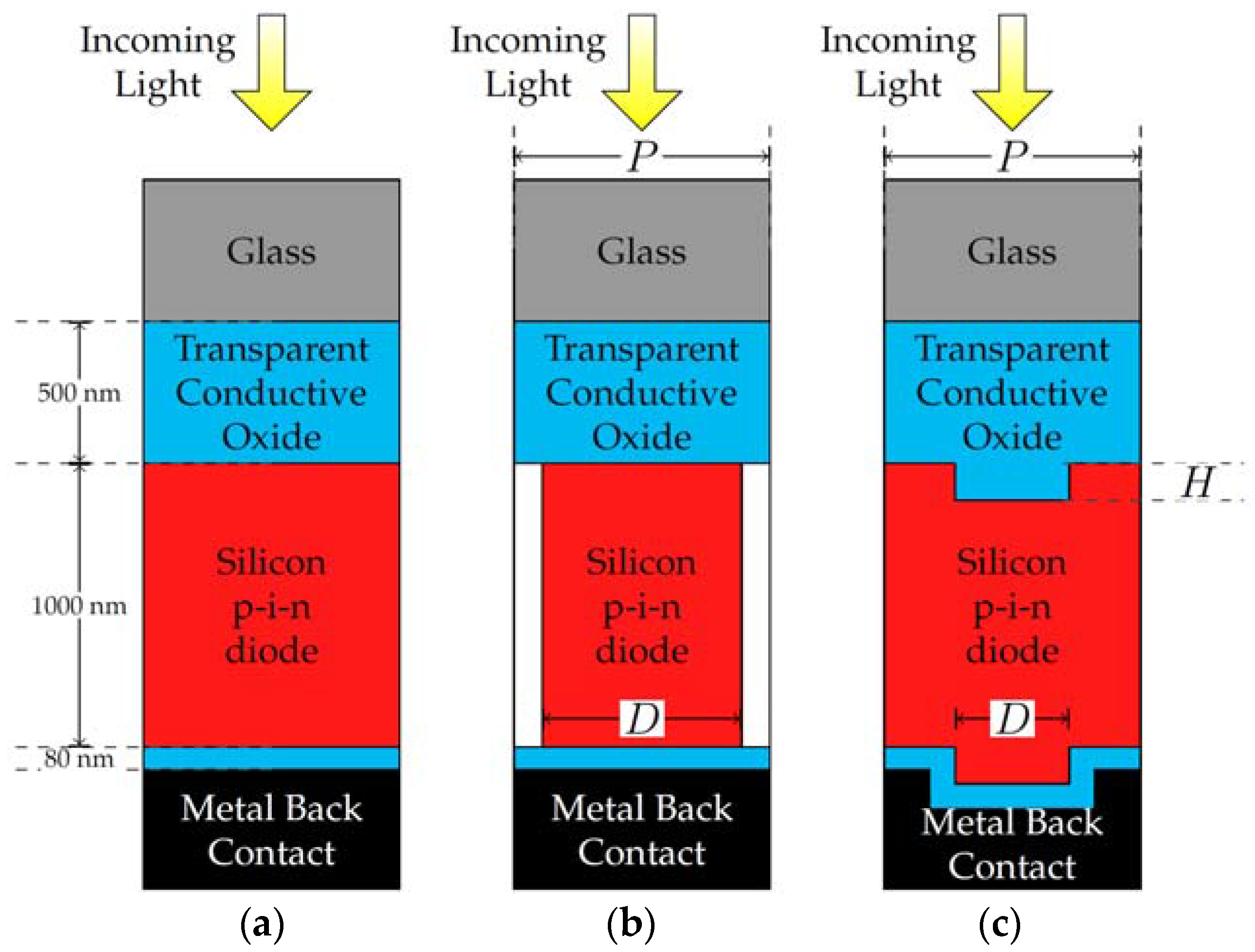 Light trapping structures can take various forms such as nanowires nanoholes and nanocones to enhance optical absorption as well allowing the radial configuration of pn junctions. Today the thickness of the standard silicon solar cells are still 160 180 m m thick. In simple silicon solar cells eg monopoly crystalline silicon light is only passed once through the active media resulting in minimal probability for trapping of the incoming light 8.