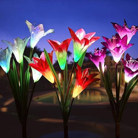 Multi Color Changing Lily Solar Flower Lights For Patio Yard