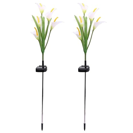 Osaladi 2pc Led Solar Garden Lights White Zantedeschia Lawn Lights