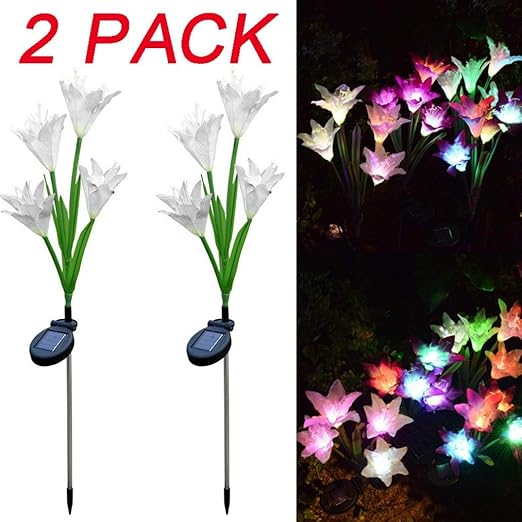 Solar Garden Lights Outdoor 2 Pcs Lily Flower Solar Powered