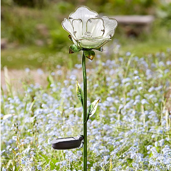 Smart Solar Glass White Rose Flower Stake Light Solar Stake