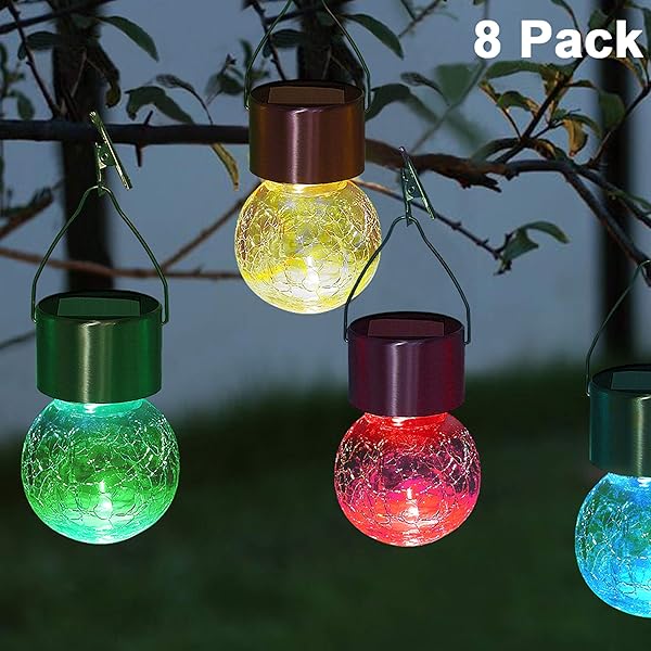 Hanging Solar Lights Multi Color Changing Cracked Glass Hanging
