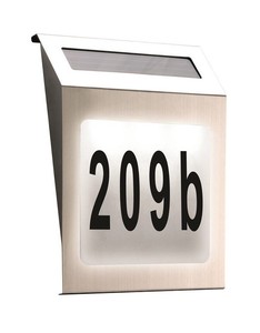 Solar house number light. No need for wires just simply wait until dark and the light will turn itself on. Different designs powered by solar or mains. Easy to install with no messy wiring solar powered for optimum energy efficiency automatic sensor activates in darkness place it on your letterbox or front door for easy identification stylish stainless.