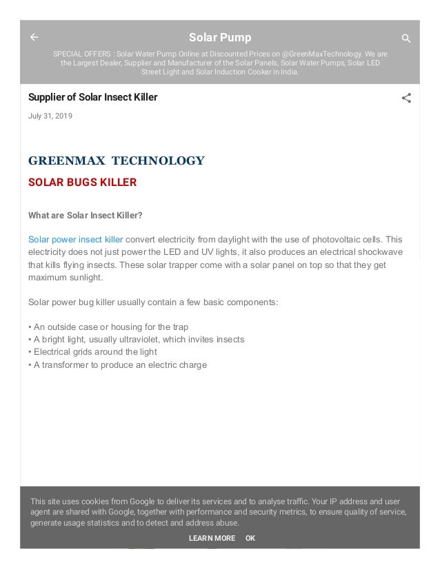 Solar Powered Insect Trap Catching On Overseas The Hindu