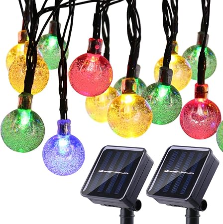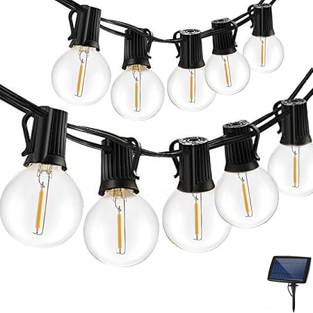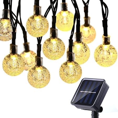 Iihome 60 led string 36ft outdoor waterproof solar powered crystal ball decorative lights for gardenpatioyardhomechrismas treeparties. Joomer 2 pack globe solar string lights 20ft 30 led outdoor bulb string lightswaterproof 8 modes solar patio lights for patio garden gazebo yard outdoors white 40 out of 5 stars 1041. Brightown 20ft solar string lights outdoor g40 patio lights with 20 led shatterproof bulbs 4 light modes weatherproof hanging lights for backyard bistro pergola party decor e12 base 2700k black.