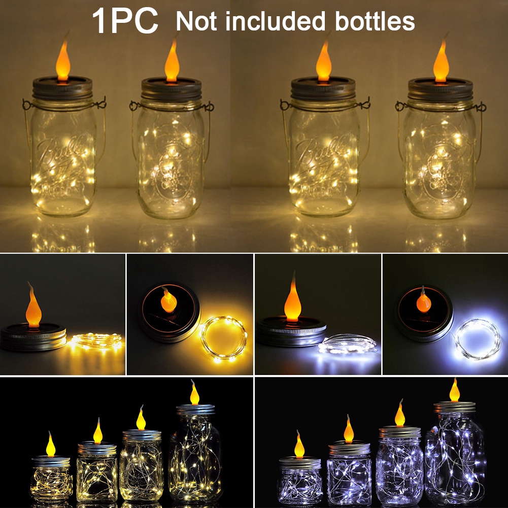 10 Led Solar Fairy Lights Mason Jar Lid Lamp Outdoor Yard Garden