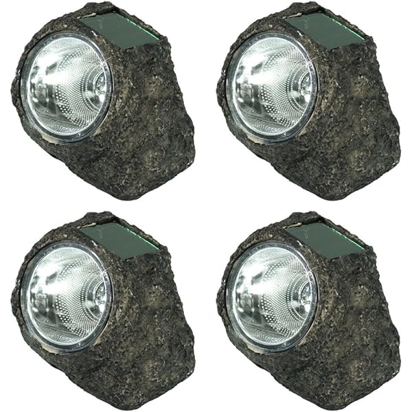 Solar Powered Rock Lights Set Of Four Led Outdoor Stone