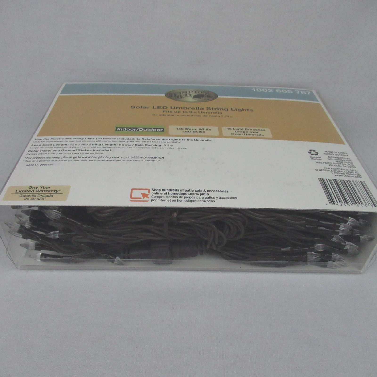 1002665787 Hampton Bay Solar Led Umbrella String Lights 15 Light