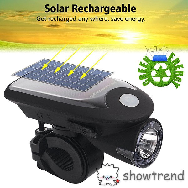 Led Usb Rechargeable Bike Light Headlight Solar Energy Bicycle
