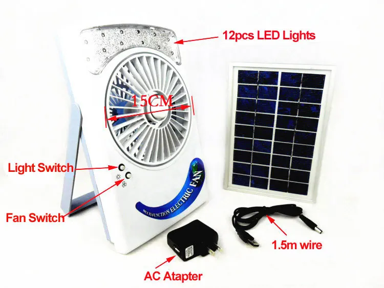 Portable Solar Powered Electric Fan With Led Lights Solar Panel 3w