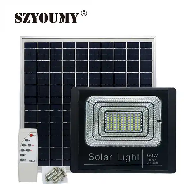 Compared with other solar sensor flood lights supplier our solar flood lights outdoor with the ai technology specially yzy ll 107 type 200w solar flood light the working time is 3 5 times longer more than 15 days and brightness. 60w jd 8860 solar flood light. 25w 40w 60w 100w s2 led solar flood light with remote spotlights ip66 intelligent outdoor lighting waterproof 8 modes 6000 19900.