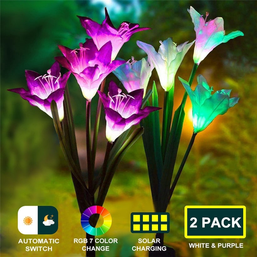 2pcs Solar Light Colorful Flower Shape Outdoor Garden Light