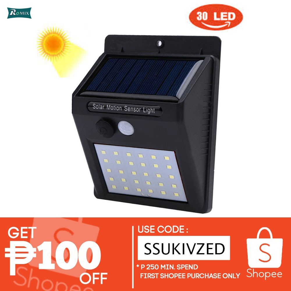 30 Led Solar Motion Sensor Wall Light Ip65 Waterproof Shopee
