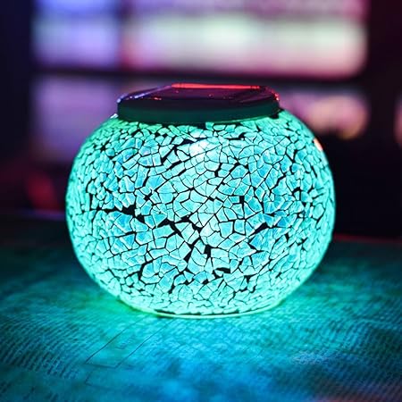 Solar Power Night Light Mosaic Glass Colorful Changing Rainbow