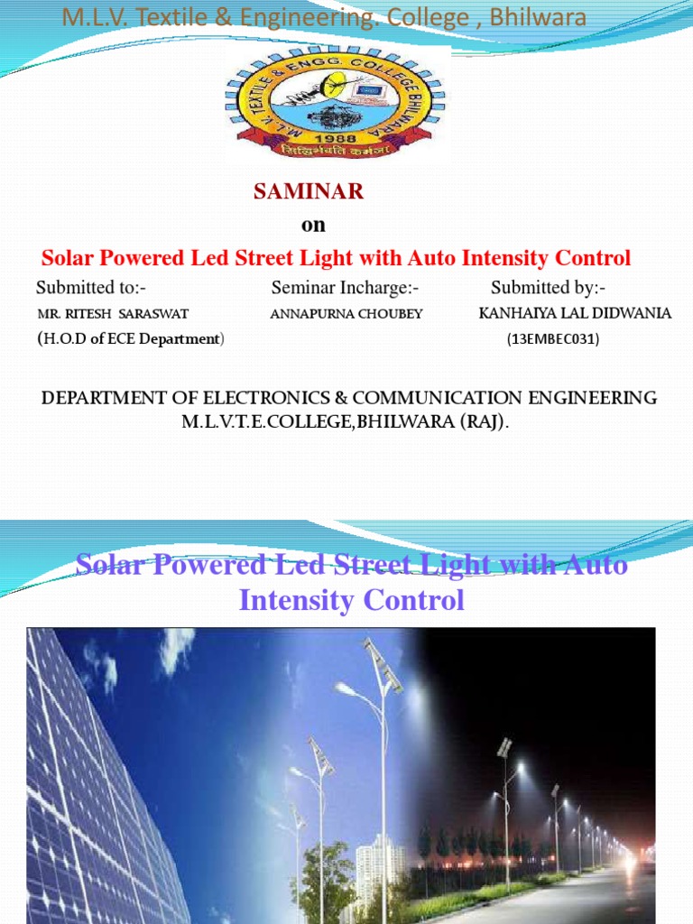 Solar Powered Led Street Light With Auto Intensity Control Pdf