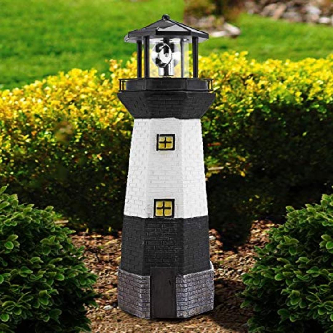 Summerfield terrace gifts decor and more solar powered lighthouse pack of 1 sold by growkart. Solar garden lighthouse outdoor yard decoration decorative and durable led lighthouse rotating solar lights. 42 out of 5 stars 17.